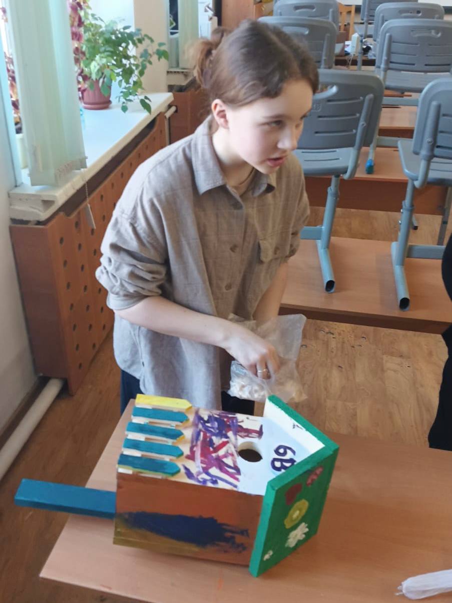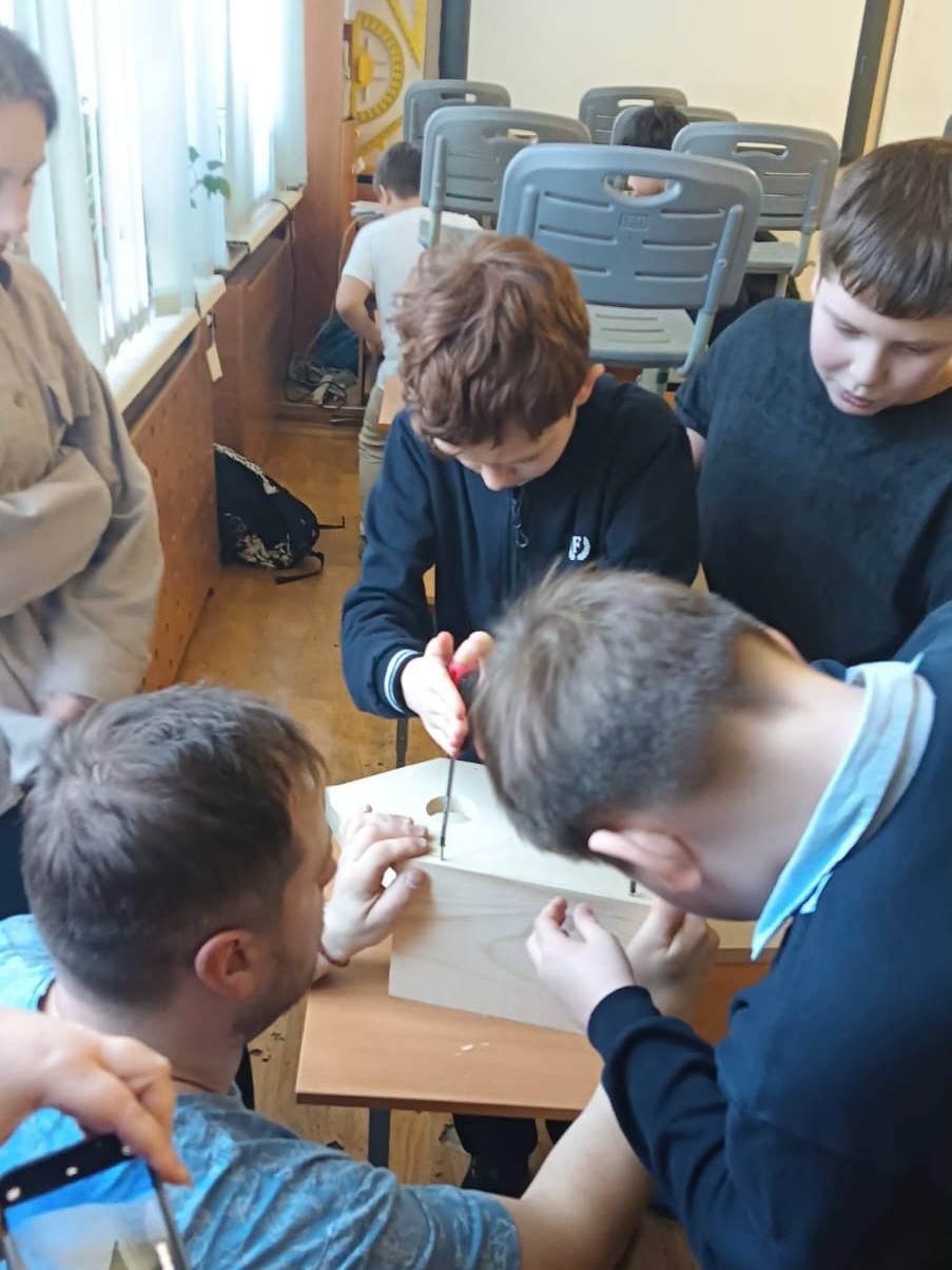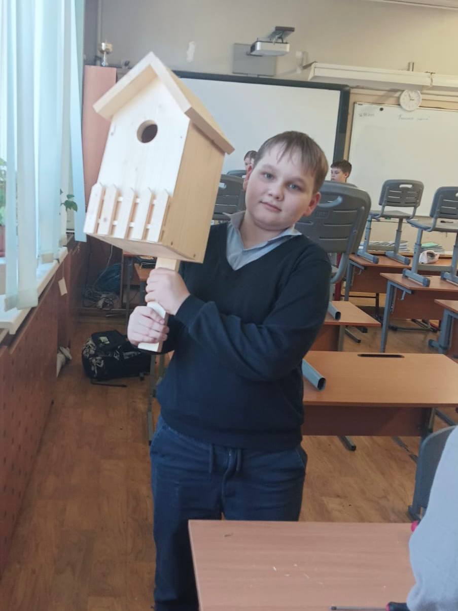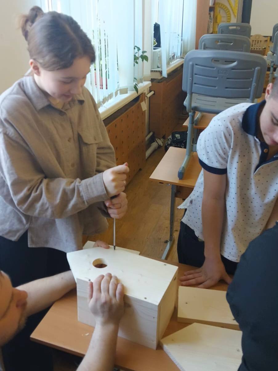 А ребята из 6В класса (классный руководитель — Зюзюкова Дарья Дмитриевна) изготавливали скворечник для школы!